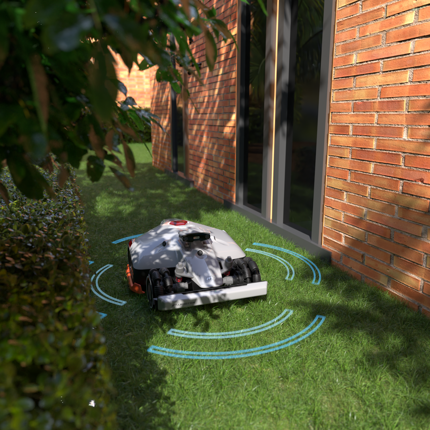 The AI algorithm in the vision system can distinguish whether an object ahead is tall, thick grass to be mowed or an obstacle to avoid, such as children or animals.