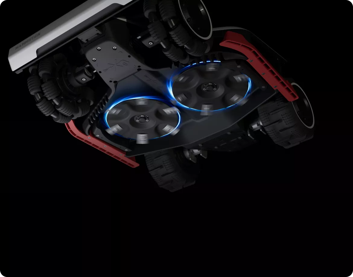 Two high-torque 165W motors with 6-blade discs work with LUBA 3’s AI vision to automatically adjust speed and power based on grass density, maximizing cutting performance and energy efficiency.