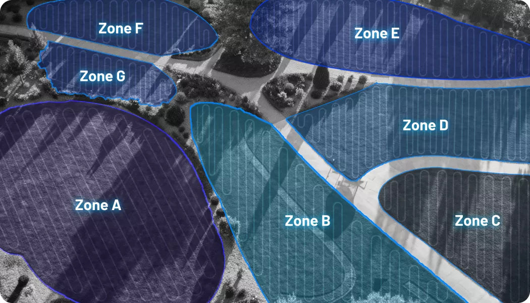 Smart app control for up to 50 mowing zones
