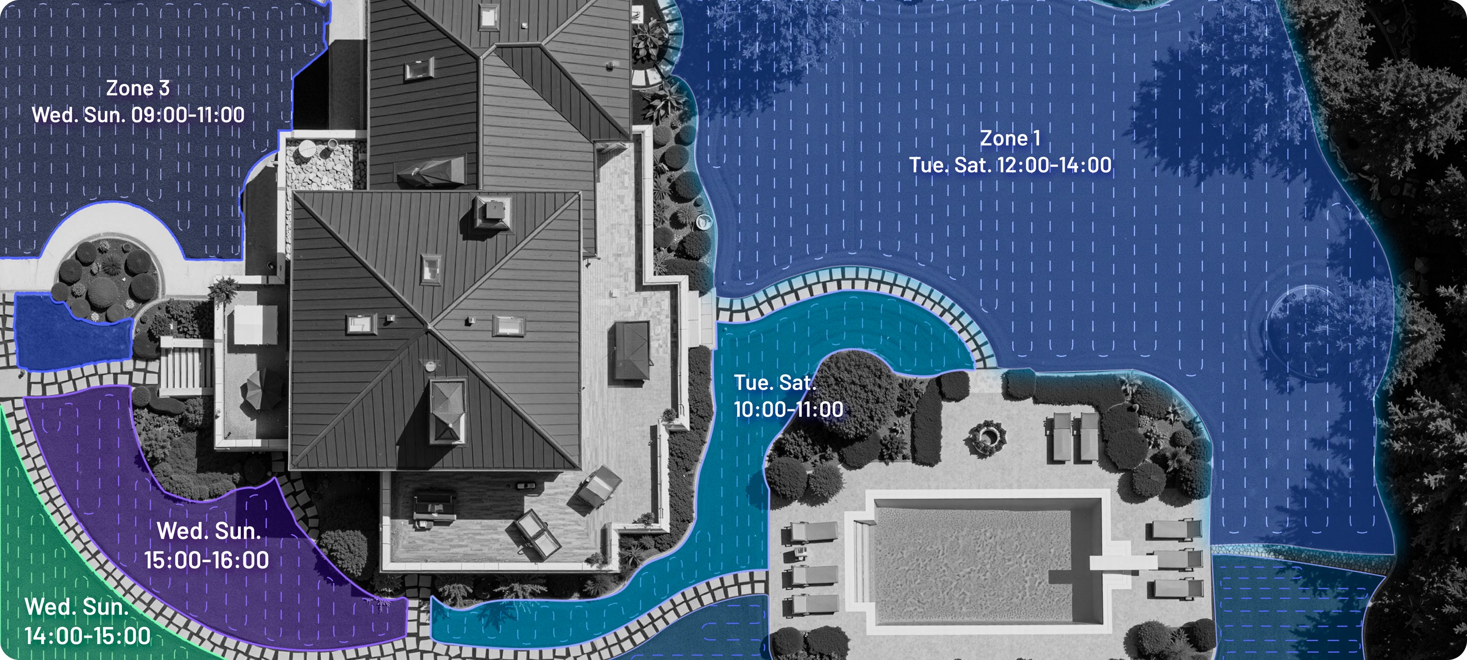 AI analyzes each zone to determine the most efficient mowing route, reducing overlap and saving time.