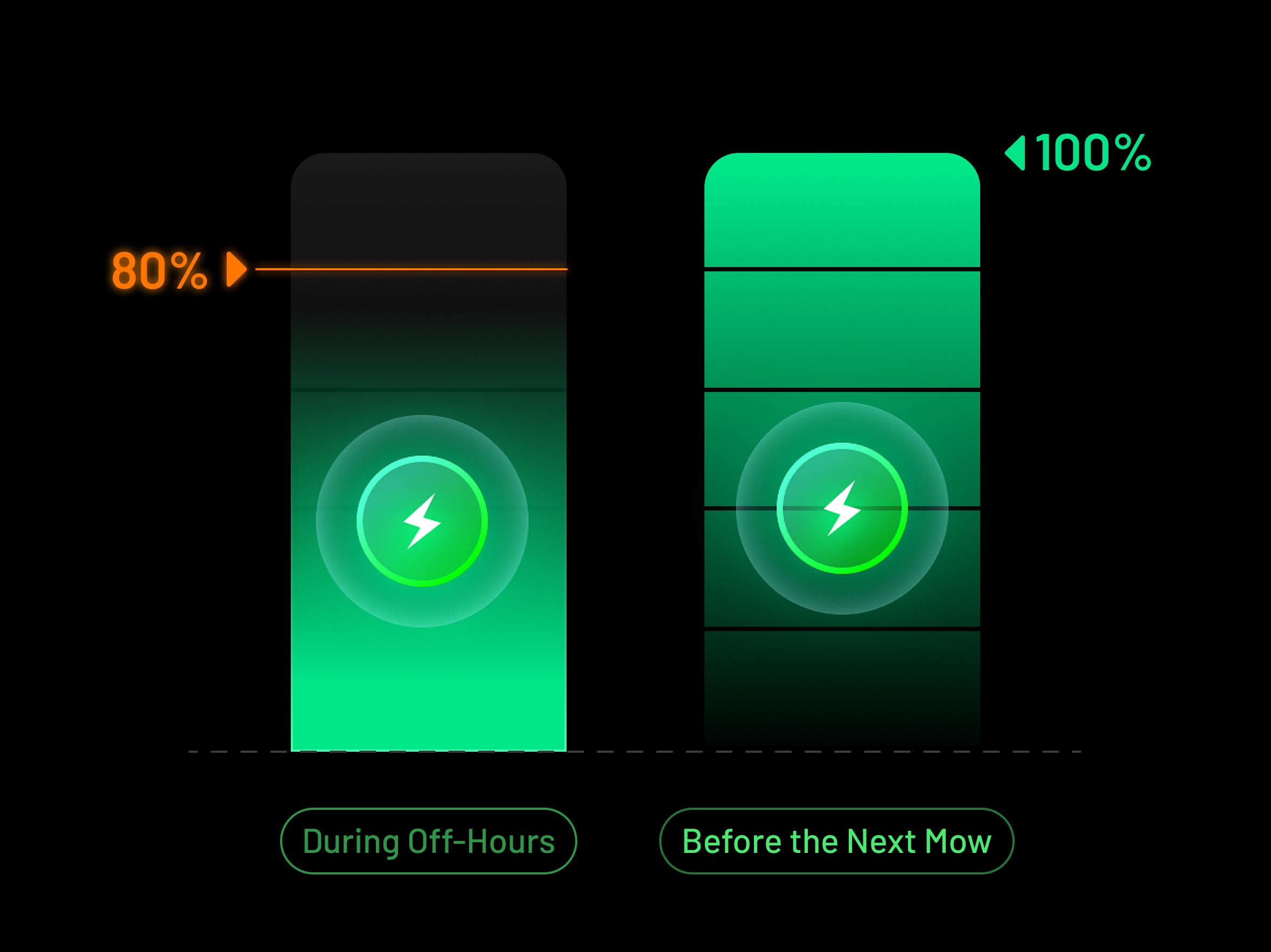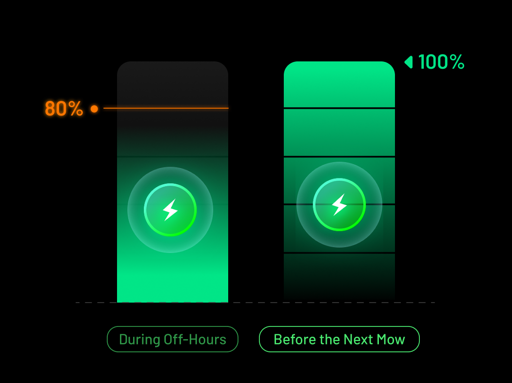 Optimize charging your way — set a custom limit like 80% to extend battery lifespan, and schedule Off-Peak Charging so it powers up only during cheaper hours, keeping every run both smarter and more economical.
